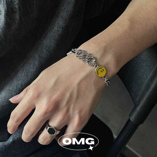 OMG - Y2K卡通黃色笑臉男士手鏈 (最後一條)