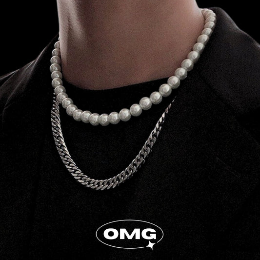 OMG - 雙層拼接珍珠古巴男士頸鏈/項鍊