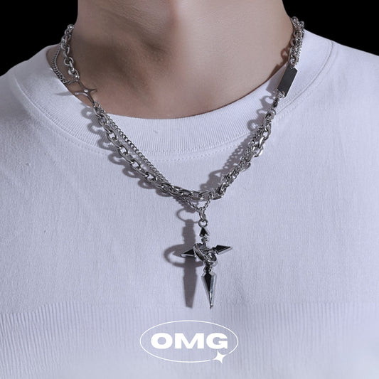OMG - 重工十字架雙層男士頸鏈/項鍊