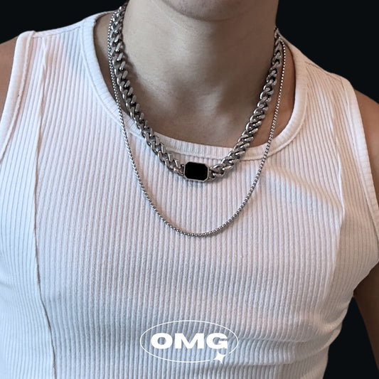 OMG - 雙層黑寶石古巴男士頸鏈/項鍊 (最後一條)