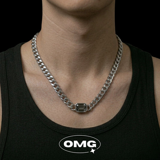 OMG - 暗灰方鑽古巴男士頸鏈/項鏈