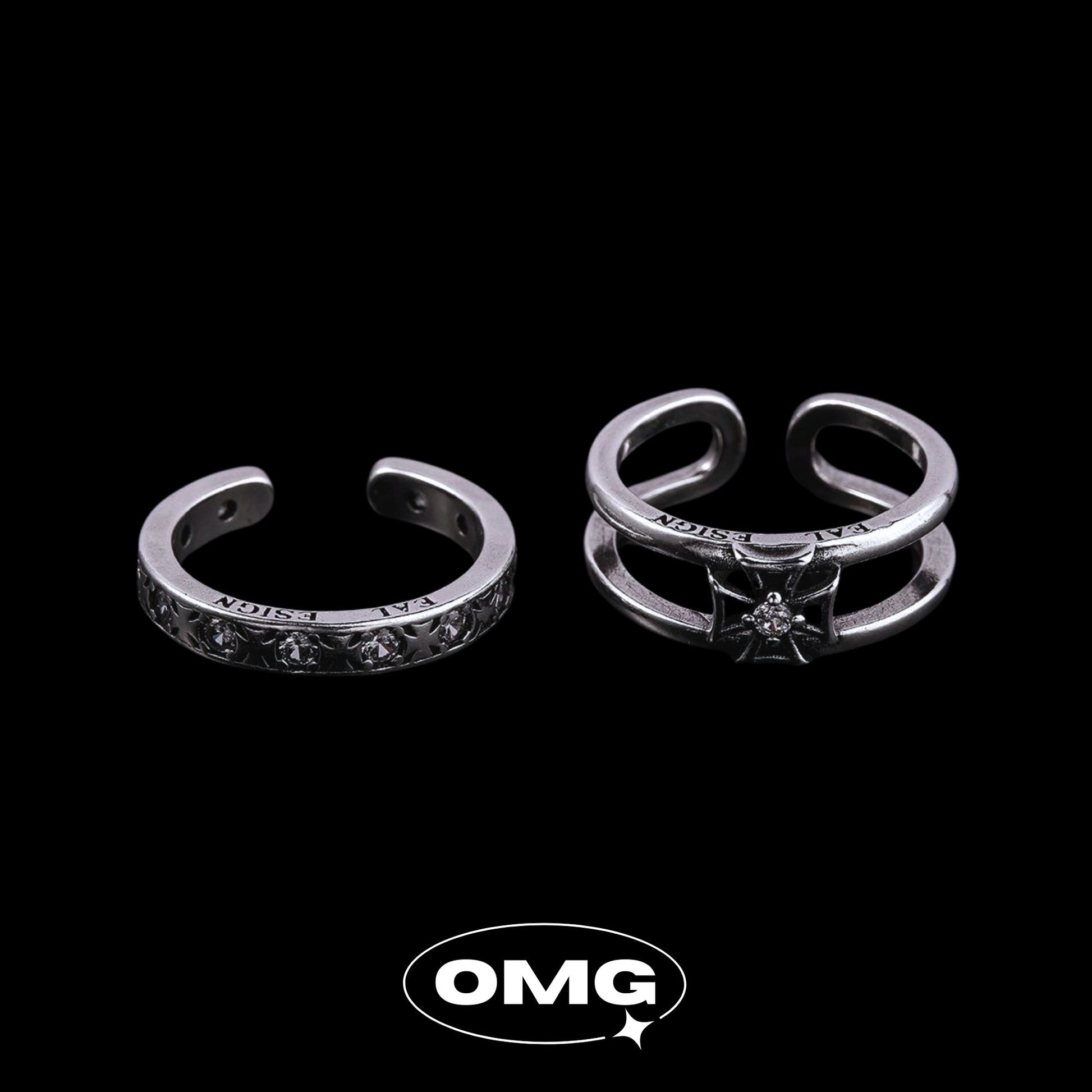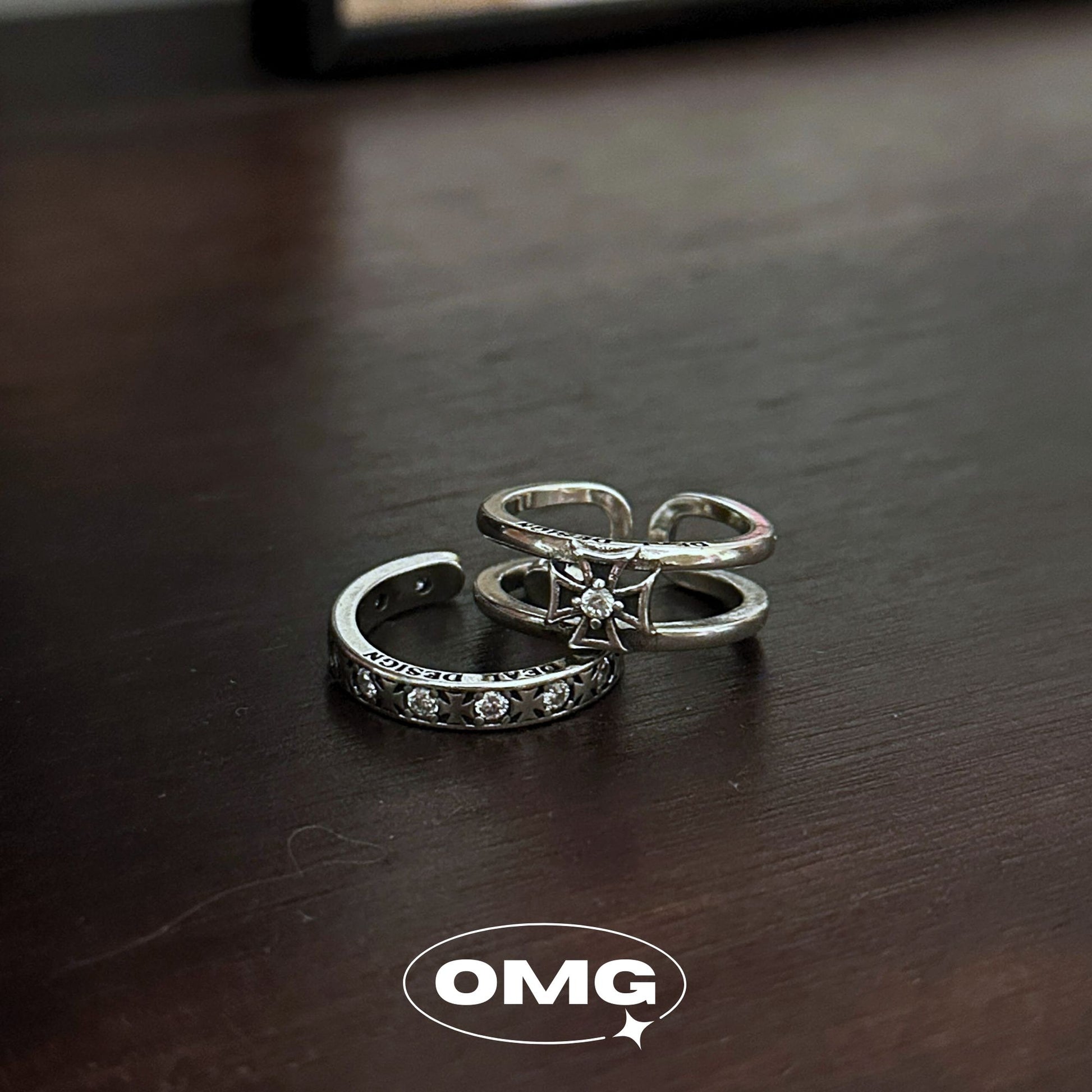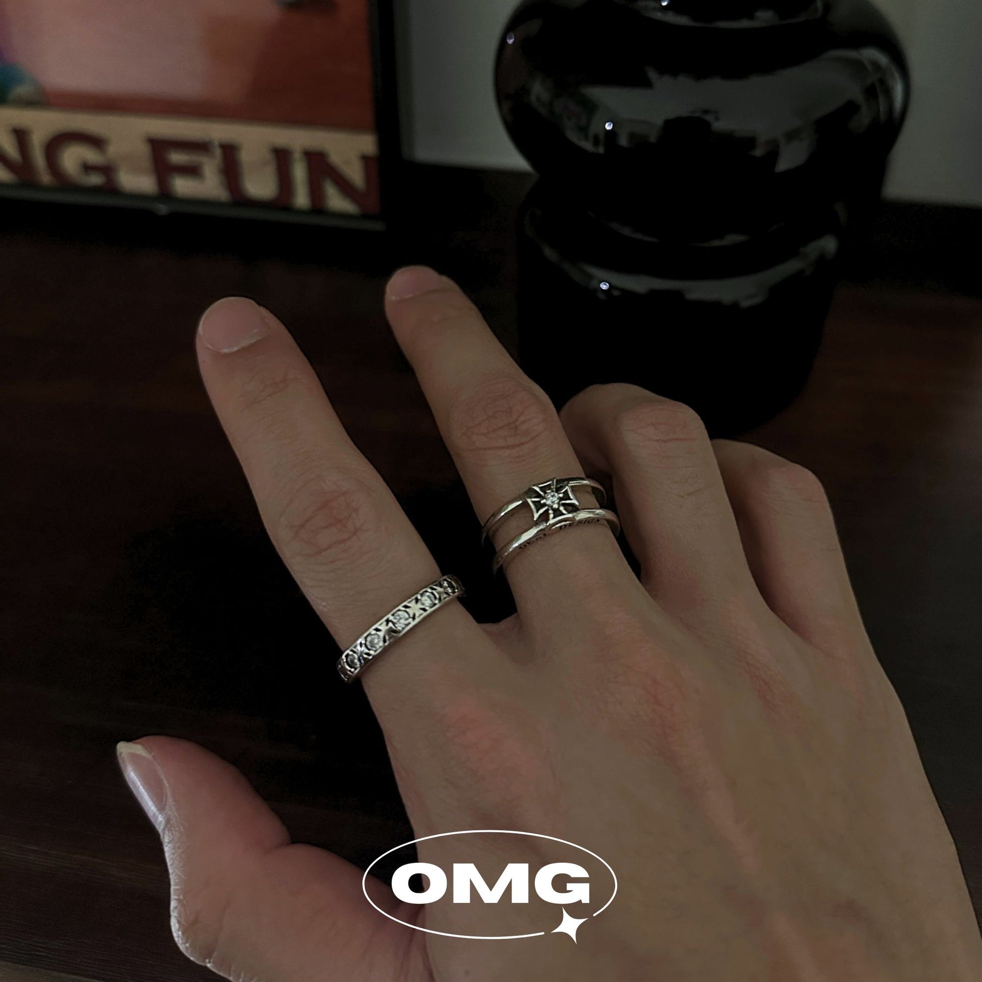 戒指中央鑲嵌閃耀的鋯石及十字架圖案,映照出低調光芒。戒身刻上精細的紋路與多層間紋,展現出復古時尚特性。戒指可分拆成兩隻戒指獨立佩戴,輕鬆戴出疊戴時尚。