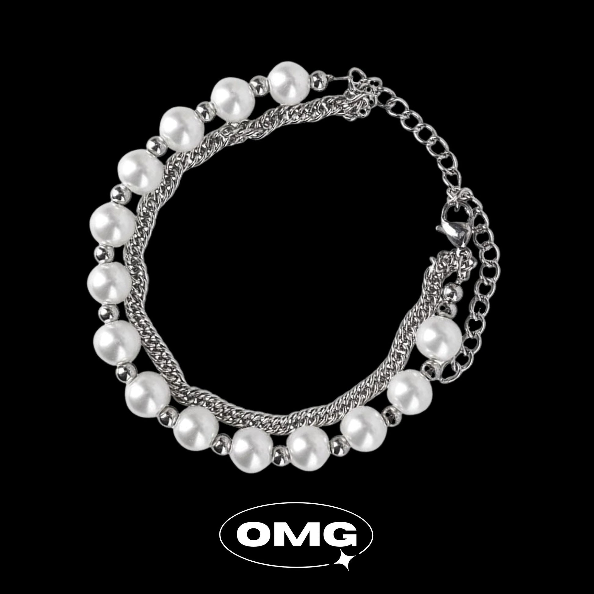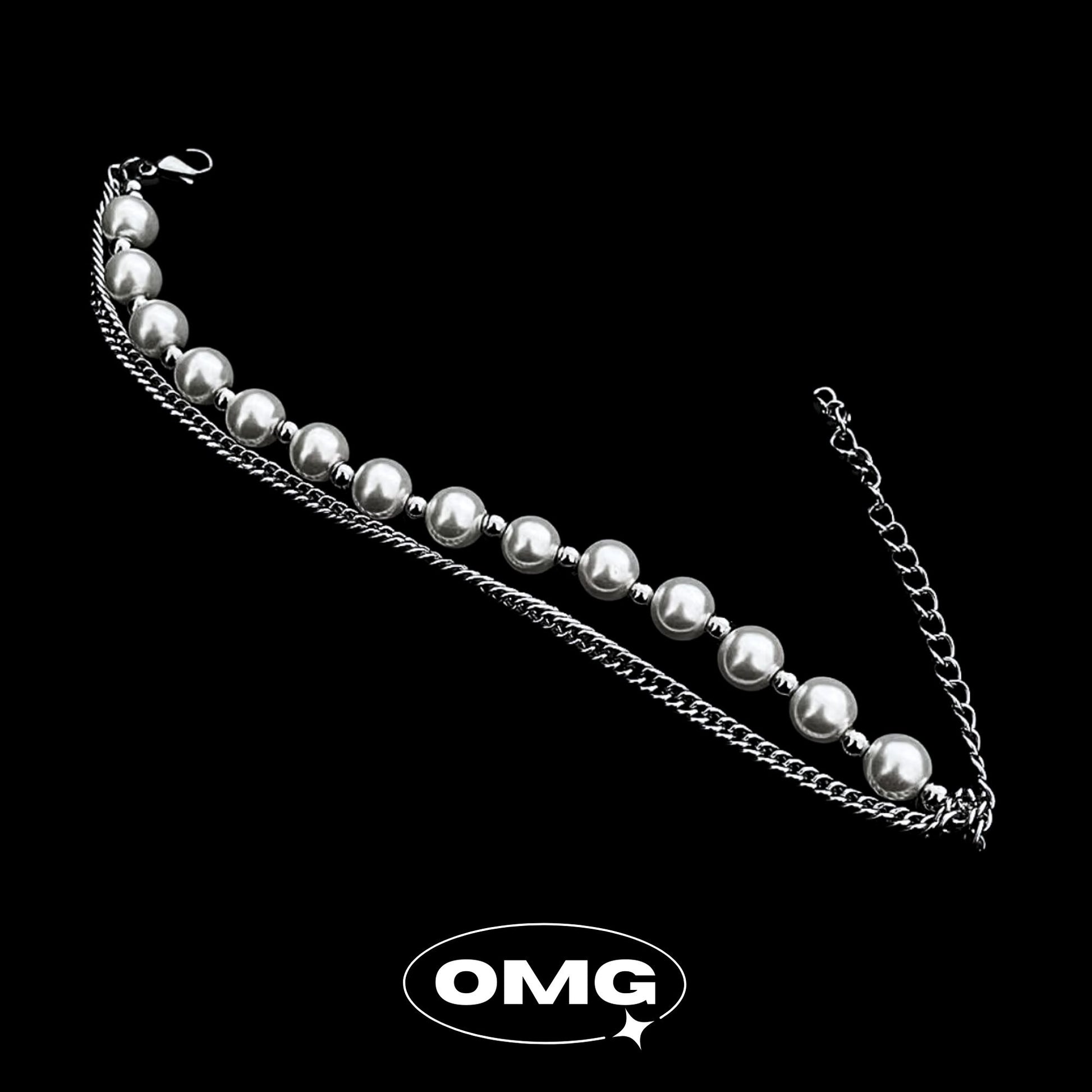 This men bracelet is a stunning accessory that combines the elegance of delicate pearl strands with the timeless appeal of a classic chunky chain. One layer is composed of exquisite pearl strings, while the other layer features a bold and retro-inspired circle link chain.