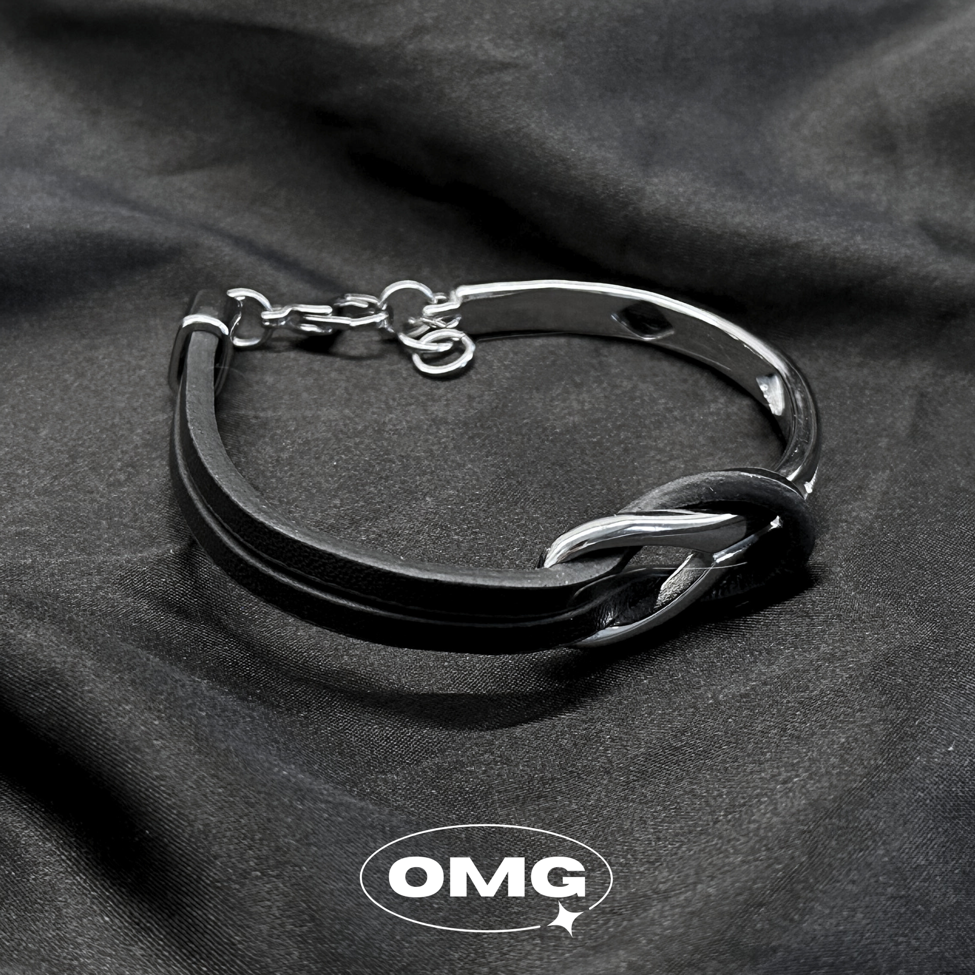 This men's bracelet is composed of leather and metal, combining two different textures. It features a cross-shaped clasp in the middle, creating a simple and fashionable overall design that highlights the mature and sophisticated style of men.
