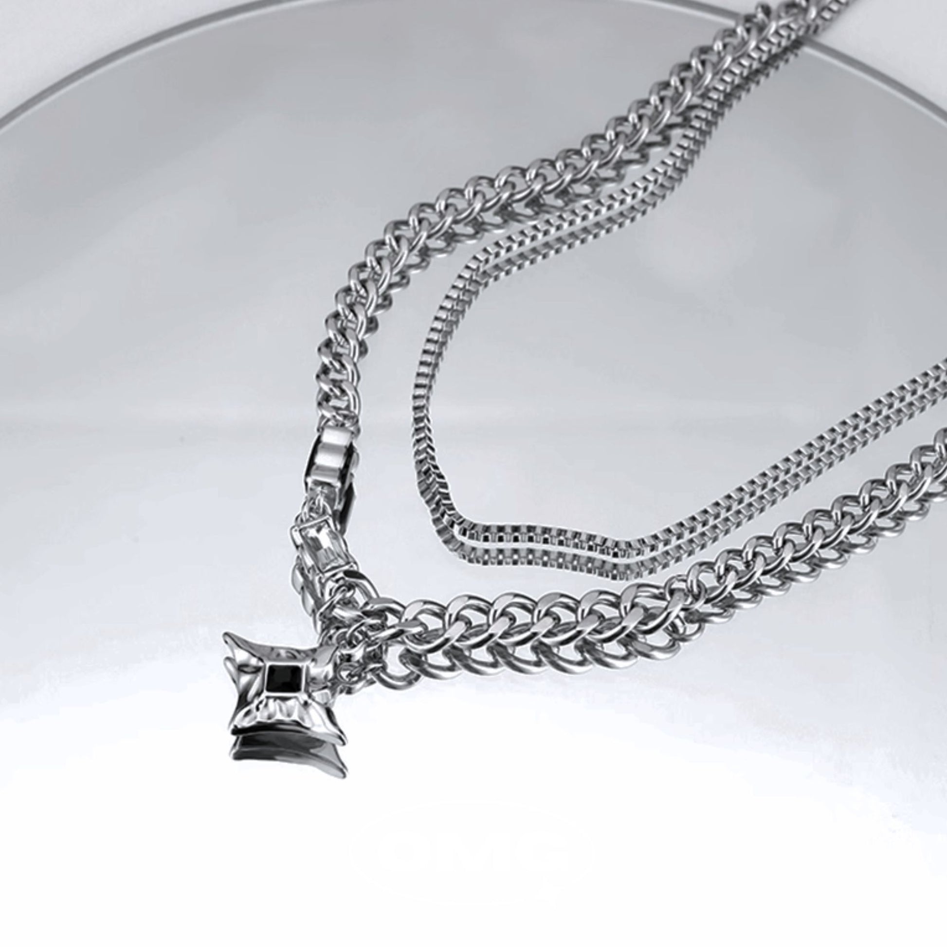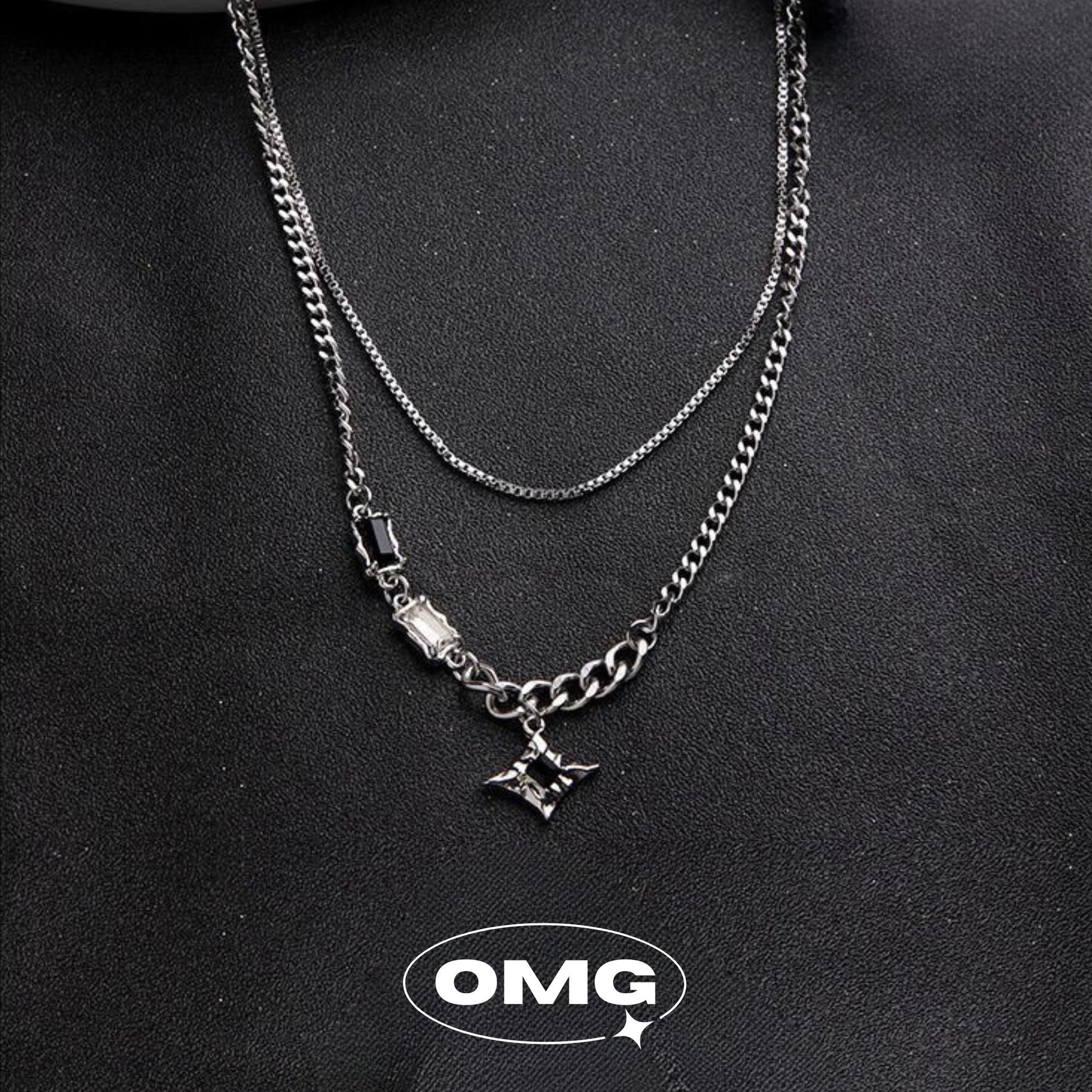 OMG - 十字星黑鋯石雙層男士頸鏈/項鍊