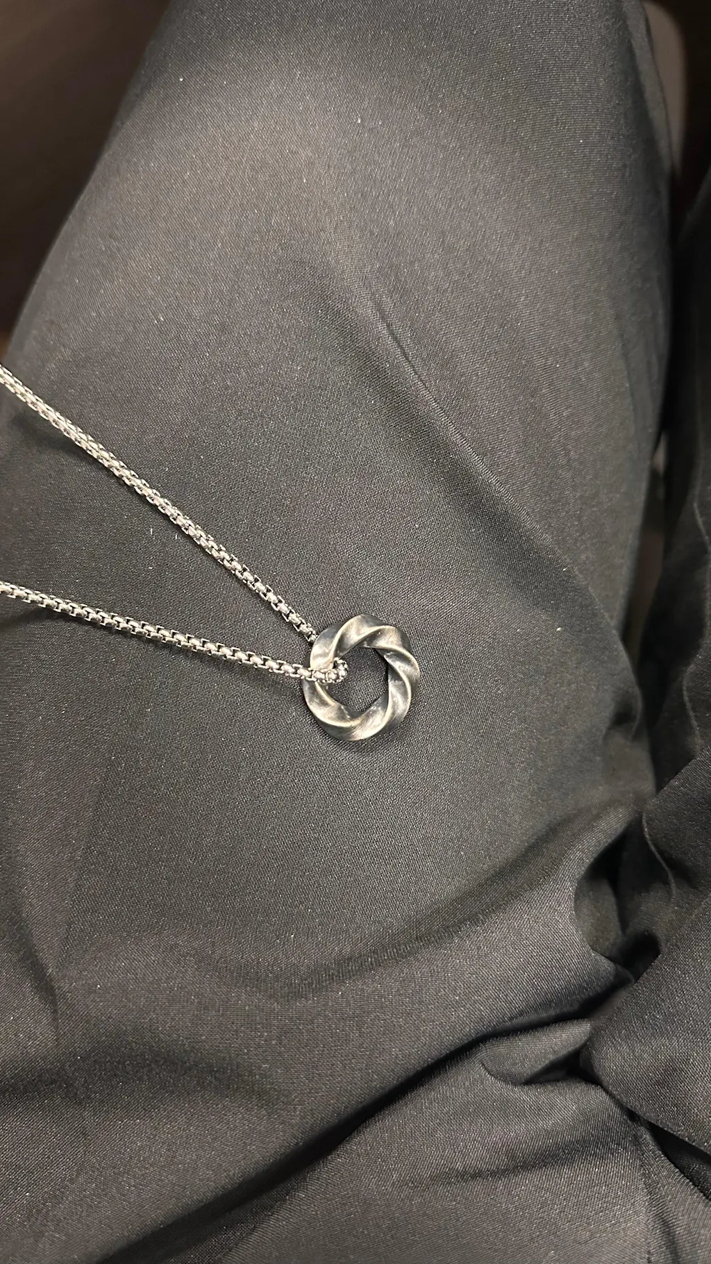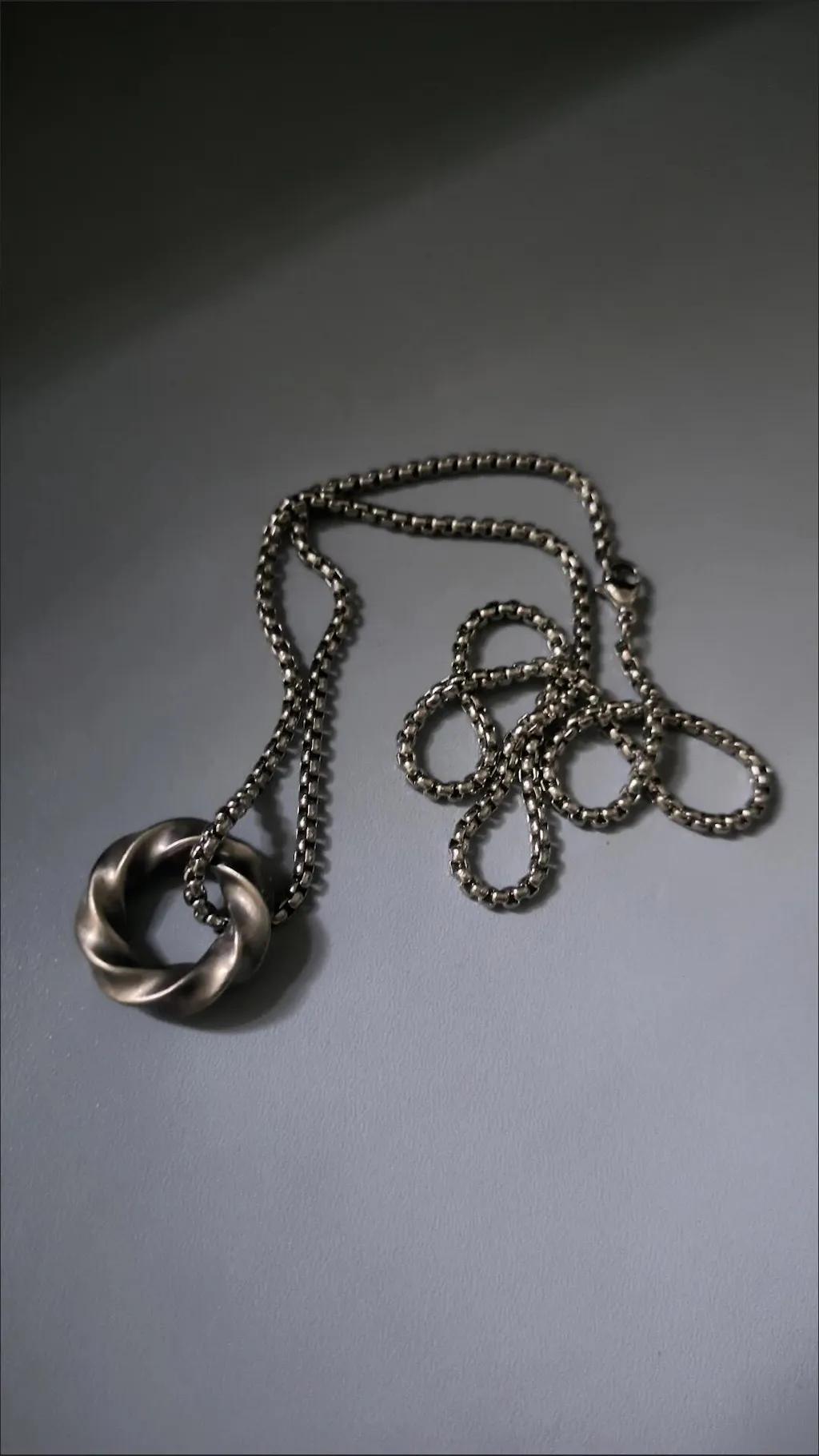 頸鏈以莫比烏斯環(Möbius)為設計靈感,象徵無限循環與永恆聯結,展現品味。復古拋光工藝,外型光滑紋理獨特,彰顯低調奢華風格。