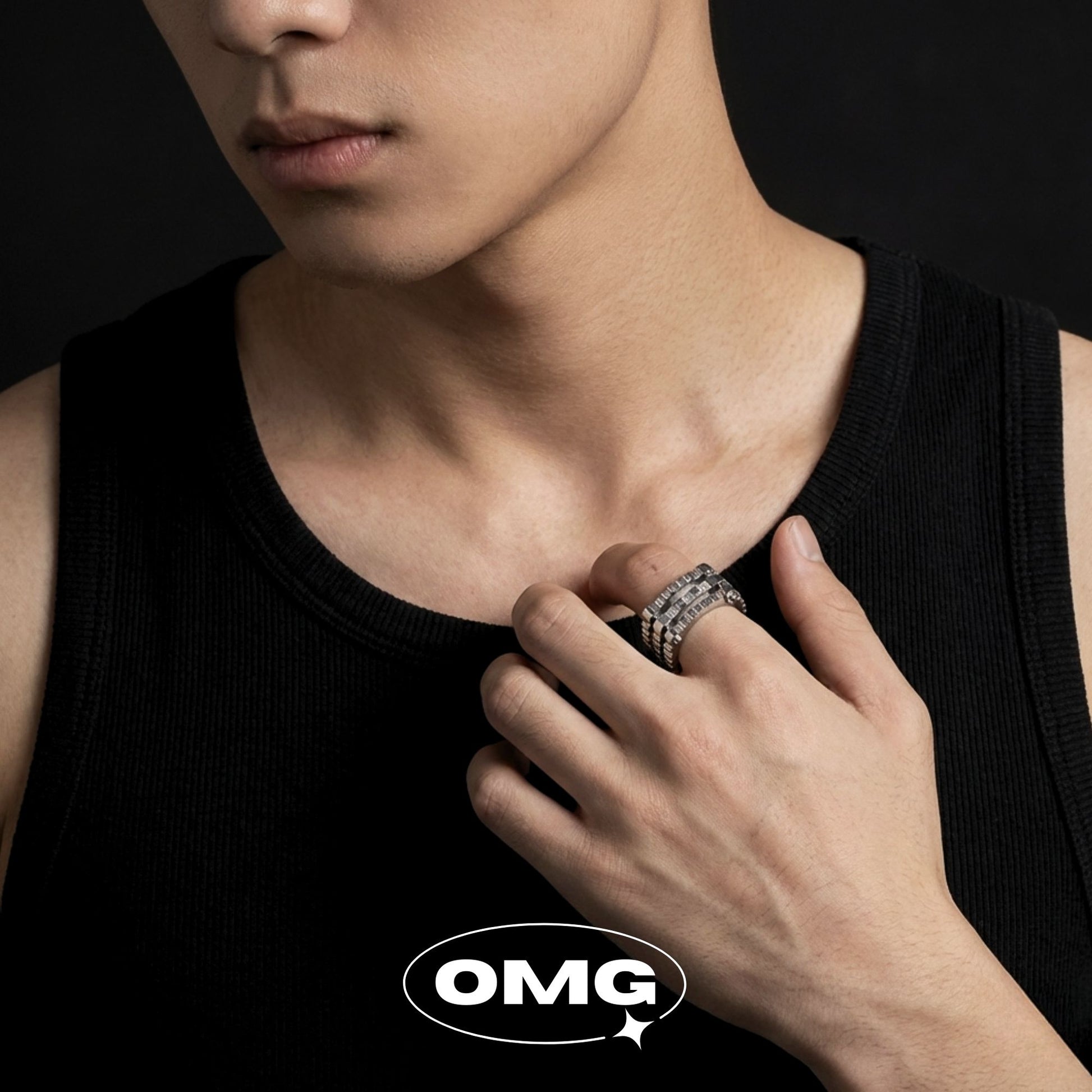 。從工業機械美學中汲取靈感,將精密的齒輪結構轉化為指間的潮流符號,配以立體齒輪上鑲閃石之細節,呈現前衛與力量兼備的工業風。