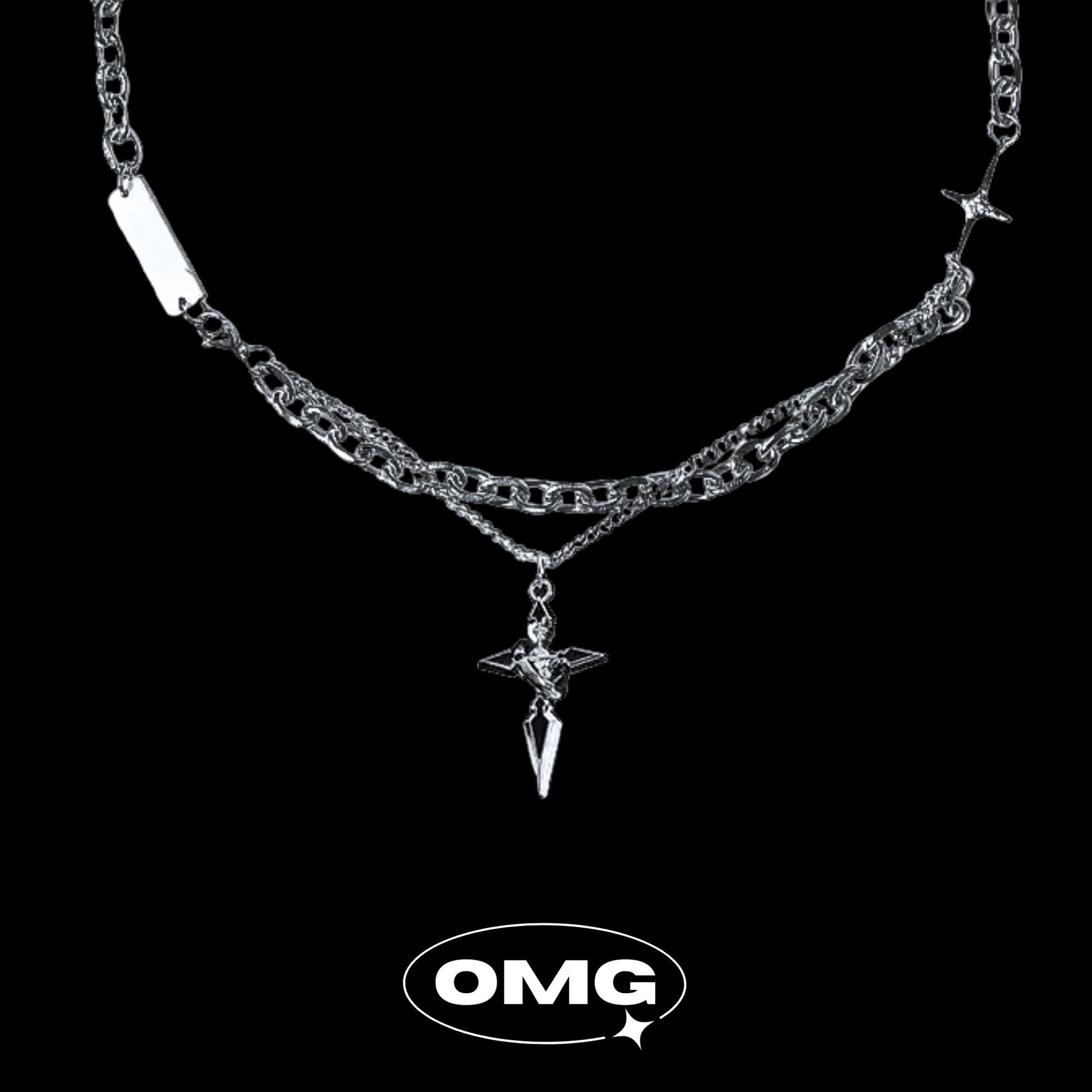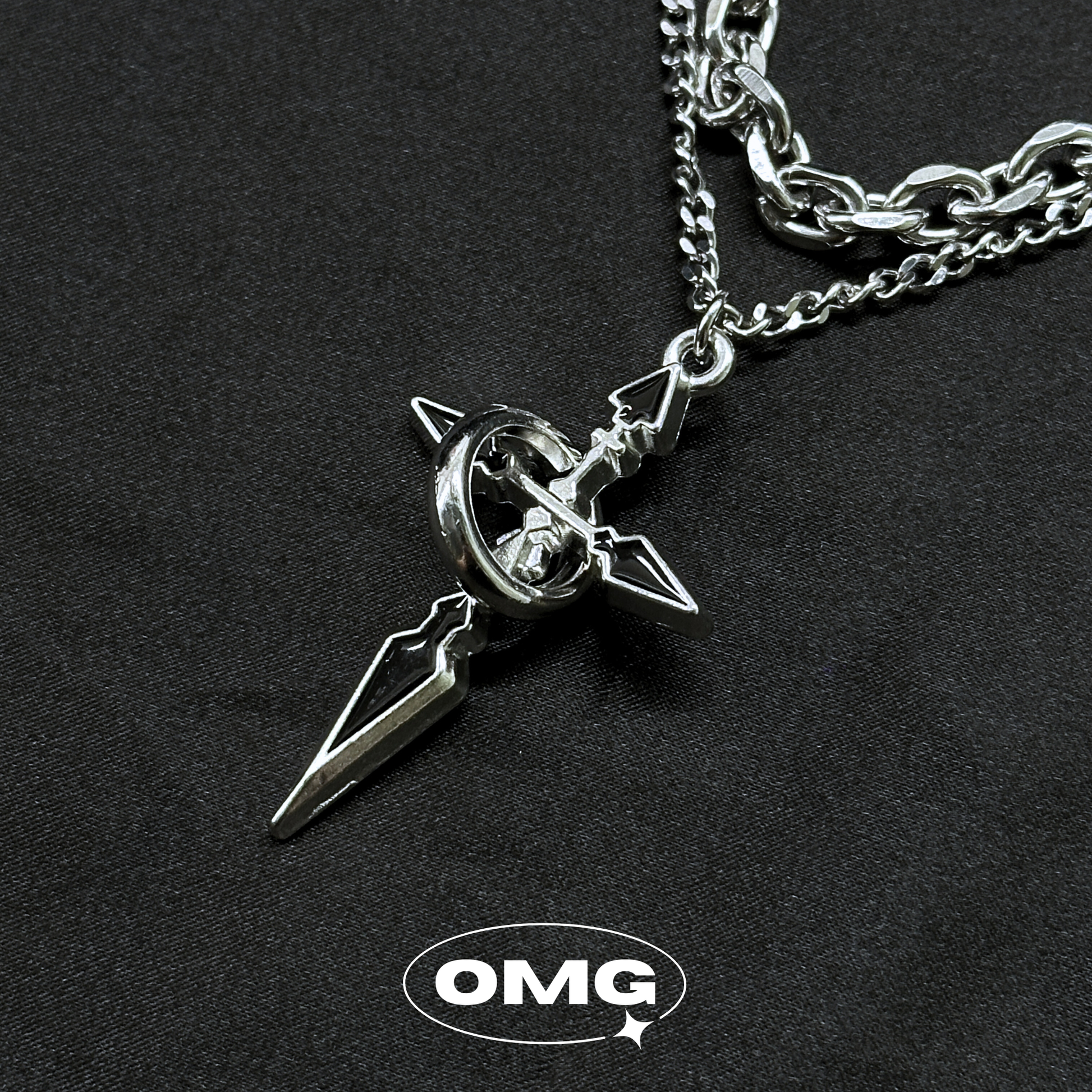 OMG - 雙鏈黑十字架男士頸鏈/項鍊